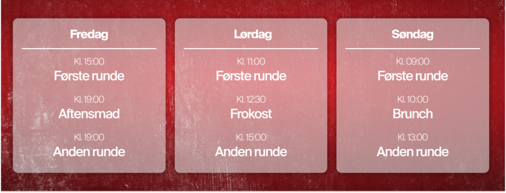 Køb billetter til VIP-loungen under Arla Protein Nordiske Mesterskaber 2026 lige her. Der er billetter til fredag, lørdag og søndag. Du kan se programmet herunder.