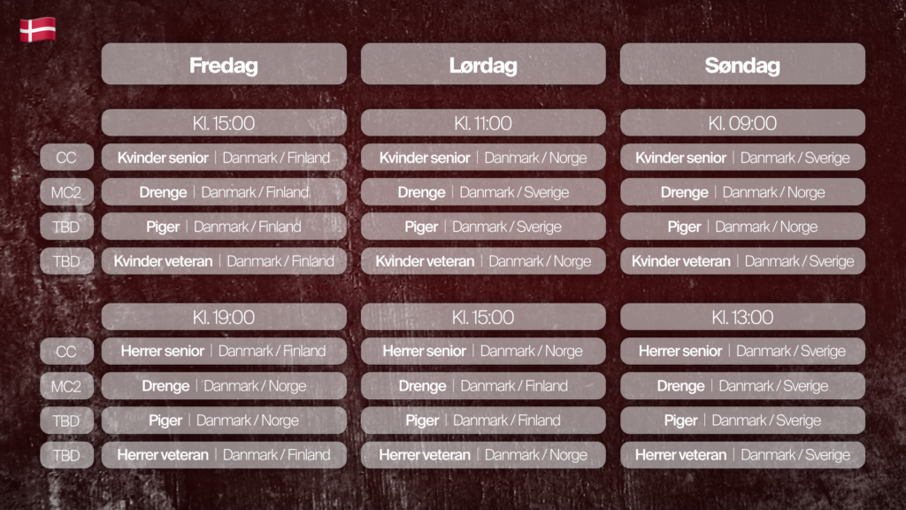 Den 13. til 15. marts 2026 de danske landshold for første gang i aktion på hjemmebane, når Sverige, Norge og Finland kommer på besøg for at deltage i Arla Protein Nordiske Mesterskaber 2026. Her stiller de nordiske lande op med både deres juniorlandshold, seniorlandshold og veteranlandshold