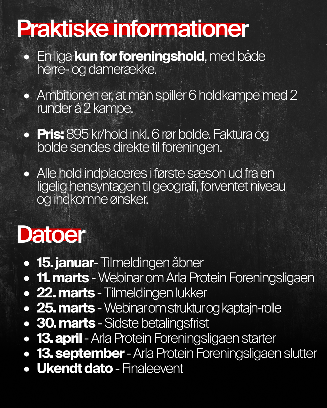 1. februar – Tilmelding til Arla Protein ForeningsLigaen 2026 åbner.